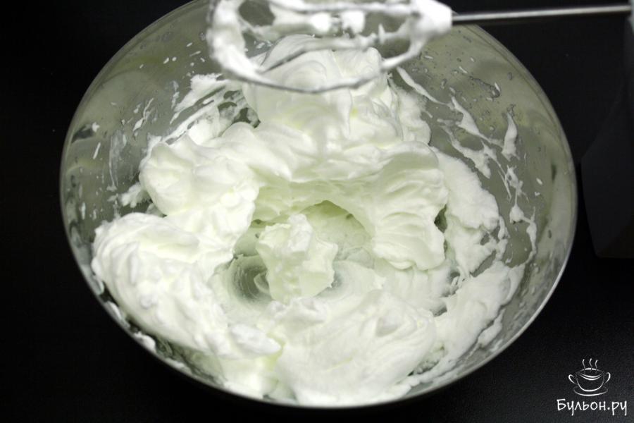 3. Белки отделить от желтков, взбить в крепкую густую пену. Желтки не понадобятся, из них можно сделать, например, загуститель для соуса.