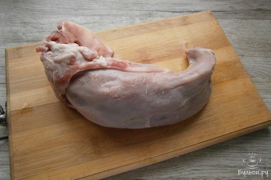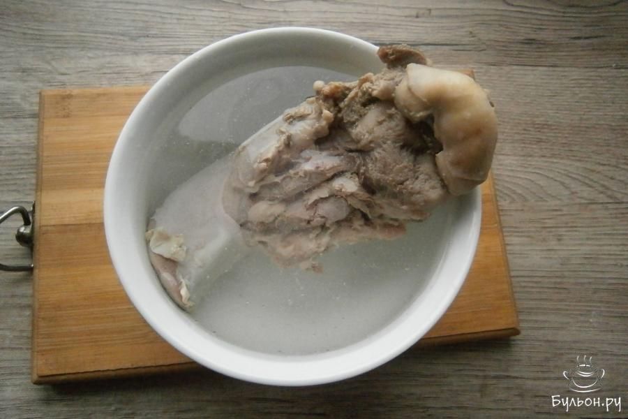1. Свиной язык тщательно помыть, залить его полностью водой, закипятить, воду посолить. Около 1,5 часов язык нужно варить.