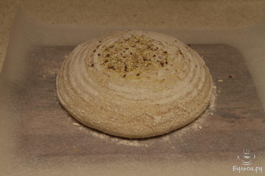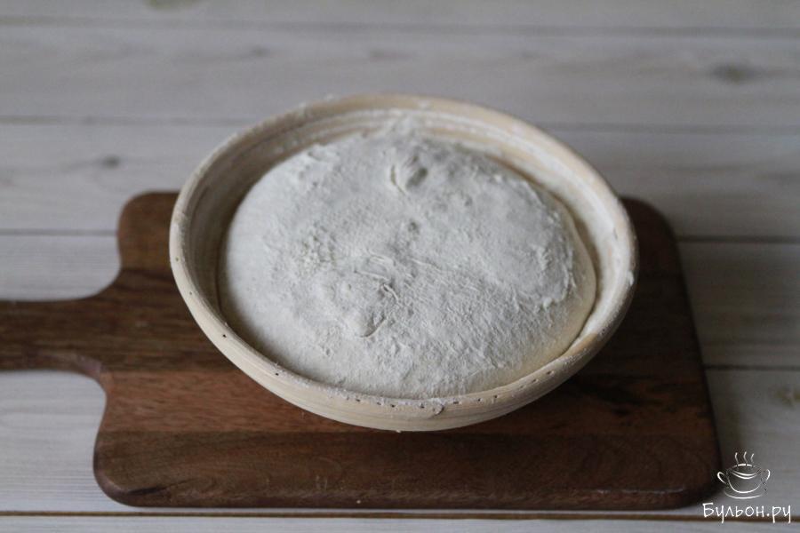 10. Уложить хлебное тесто в корзину швом вверх. Накрыть корзину пленкой и убрать в холодильник на 8-10 часов.
