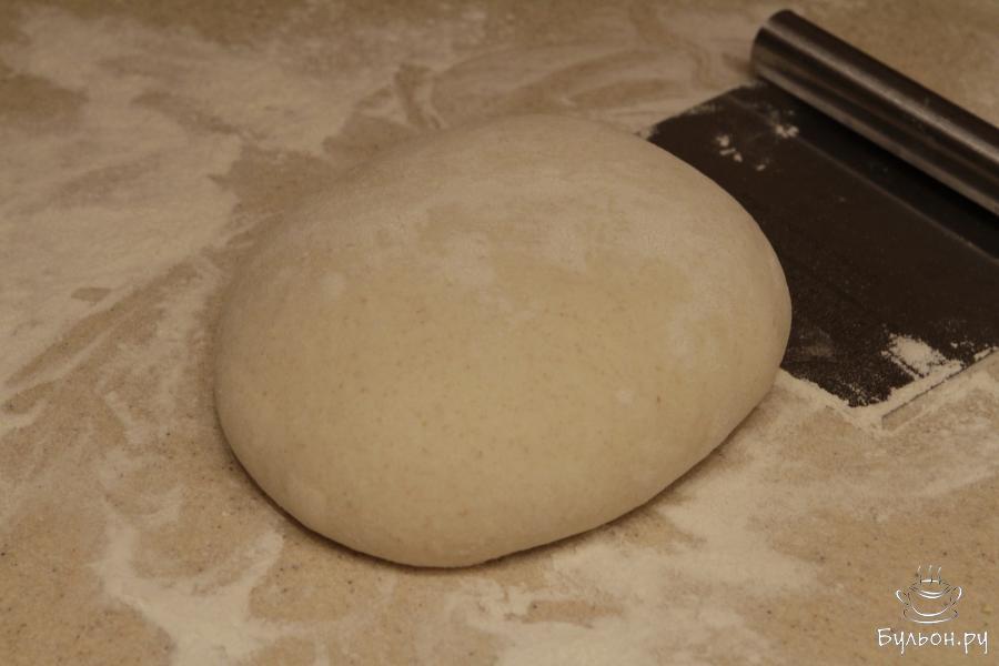 8. Тесто выложить на рабочую поверхность, присыпанную мукой. Сложить тесто, округлить его и дать отдохнуть 20 минут. Сформировать заготовку для хлеба.