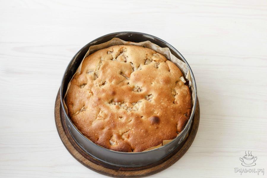 10. Проверьте готовность пирога, проткнув его деревянной шпажкой. Если шпажка выходит чистой - пирог готов. Готовый пирог оставьте еще на 10 минут в остывающей духовке.