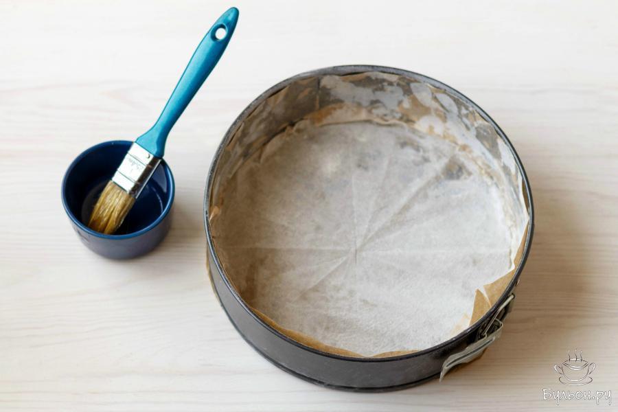 3. Форму для запекания смажьте растительным маслом и присыпьте мукой или выстелите бумагой для выпекания.