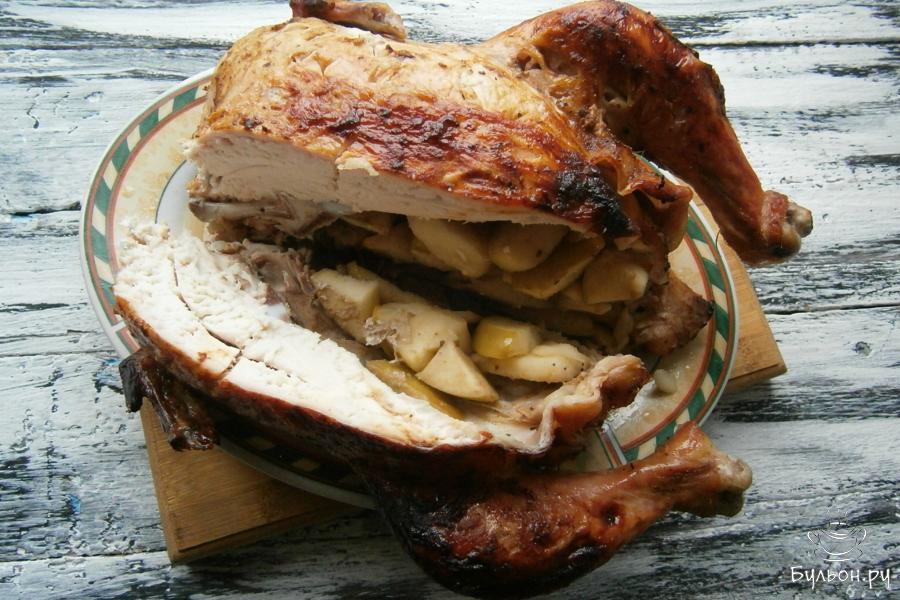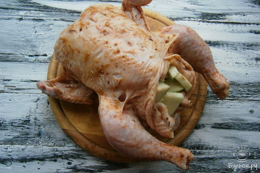 Приближаются новогодние и рождественские праздники и мы уже задумываемся о том, что же приготовить на праздничный стол. Готовить мы будем салаты, холодные и горячие закуски, выпечку и т. д. Но, главным на столе всегда остается основное горячее мясное блюдо. Предлагаю вам запечь целиком курочку с яблоками, которая поразит вас и ваших гостей своим видом и вкусом. Мясо курицы получается мягким, нежным и сочным, пропитанным специями и яблочным ароматом, да и сами яблоки, которыми фаршируется курица - необычайно вкусные. Для использования лучше всего взять яблоки сорта "антоновка", если нет таких, можно - любые.