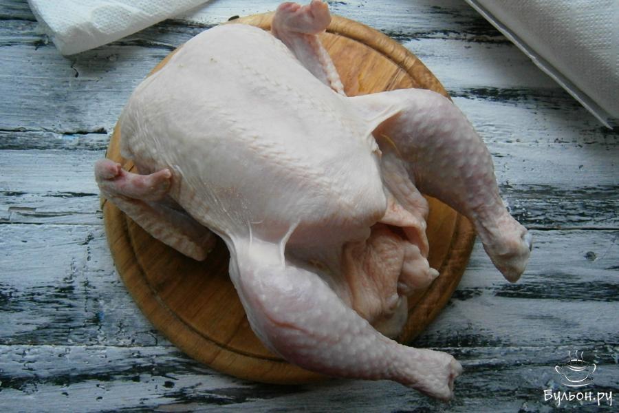10. Подавать курицу целиком на стол, где ее разрезать на части острым ножом или дать остыть до теплого состояния и поломать руками. Приятного аппетита.