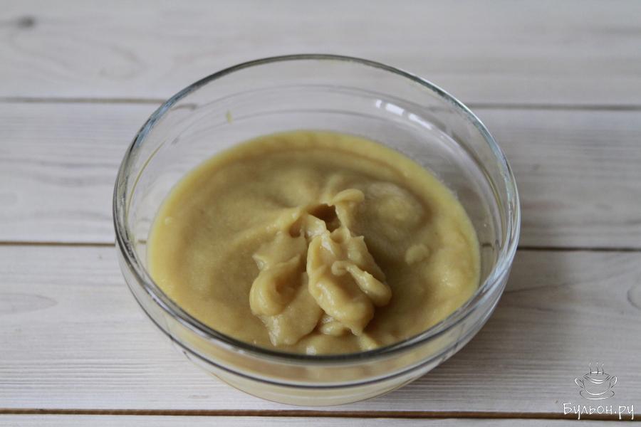 2. Яблочное пюре лучше всего приготовить с вечера. Яблоки запечь или отварить вместе с кожурой, пробить блендером и протереть через сито. Вам потребуется 150 гр. Остатки можно заморозить.
