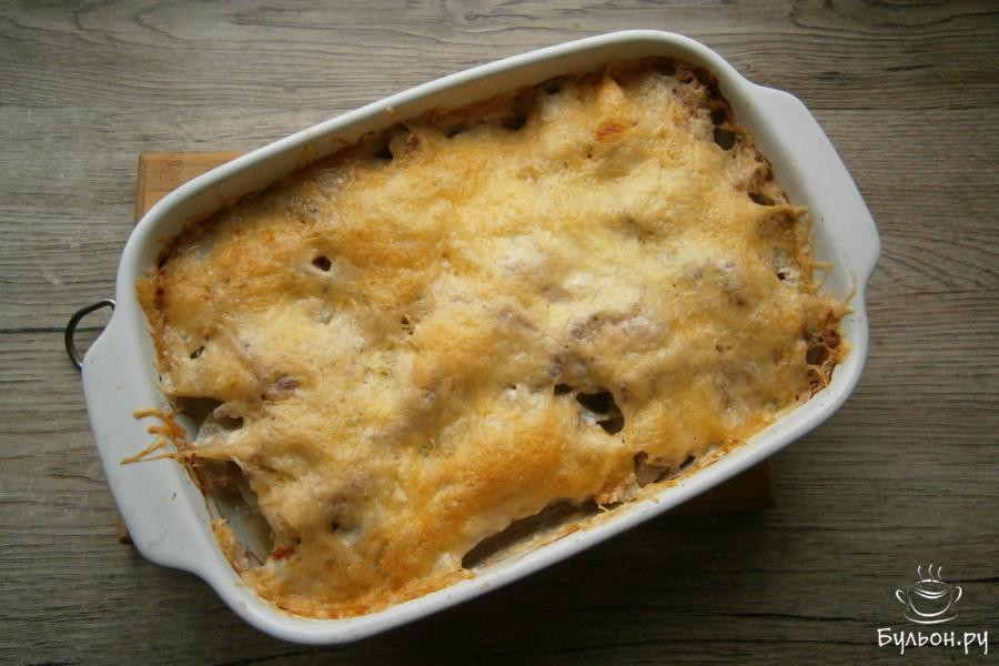 5. Засыпать все натертым твердым сыром - лучше на меленькой терке. Сыра должно быть достаточно много.