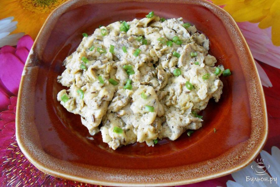 Яйца-скрэмбл - это классический американский завтрак, попросту говоря, яичница-болтунья. Самый популярный вид завтрака и у нас потому, что готовится быстро и не требует сложных продуктов. Советую приготовить на домашних яйцах с сушеными травами и тмином. Соблюдая простые советы у Вас получится пышный и воздушный скрэмбл - тщательно взбивать яйца и готовить на медленном огне. Украшать можно по-разному, я выбрала зеленый лук и красную икру.
