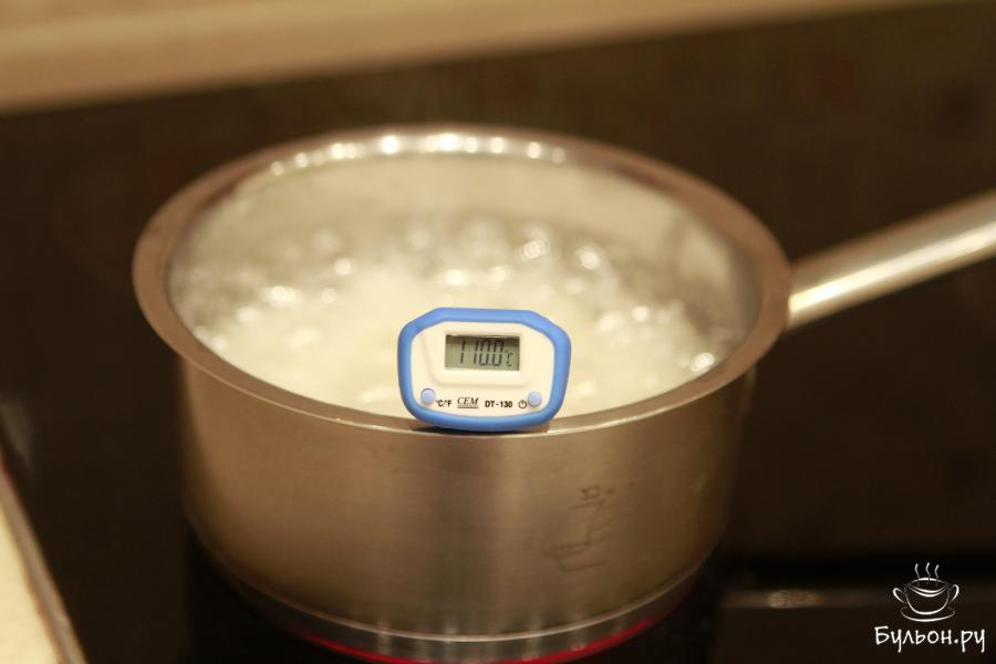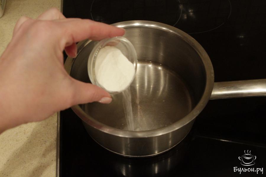 6. Для сиропа потребуется 100 мл воды, 250 грамм сахара и 7 грамм агар-агара. Агар-агар добавить в сотейник с водой и довести до кипения.