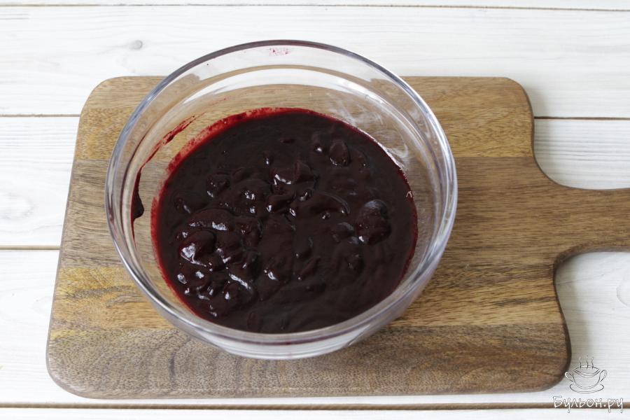3. Готовое пюре протереть через сито. Должно получиться 150 грамм чистого пюре из черной смородины. Готовое пюре остудить.