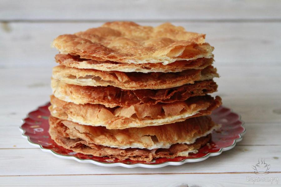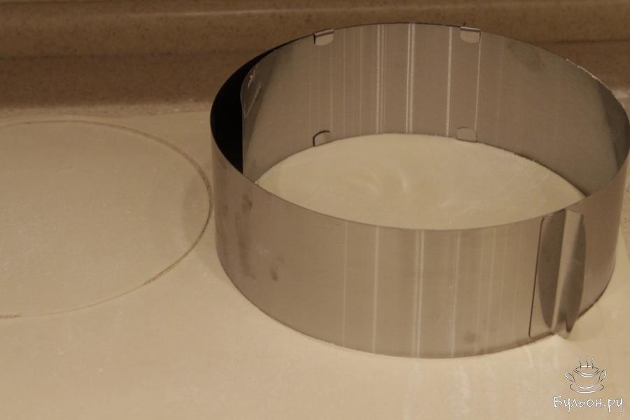 3. С помощью круглой формы для торта вырезать коржи. Из этого количества теста получается 12 коржей диаметром 24 см.