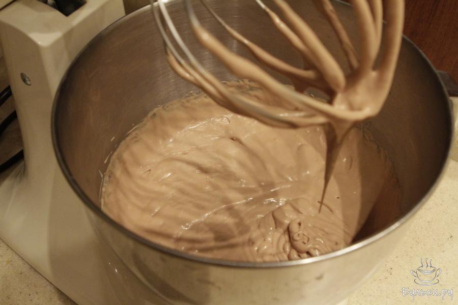 7. В крем ввести растопленный шоколад и ванилин. Можно использовать экстракт ванили. Взбить крем еще пару минут до соединения всех ингредиентов.