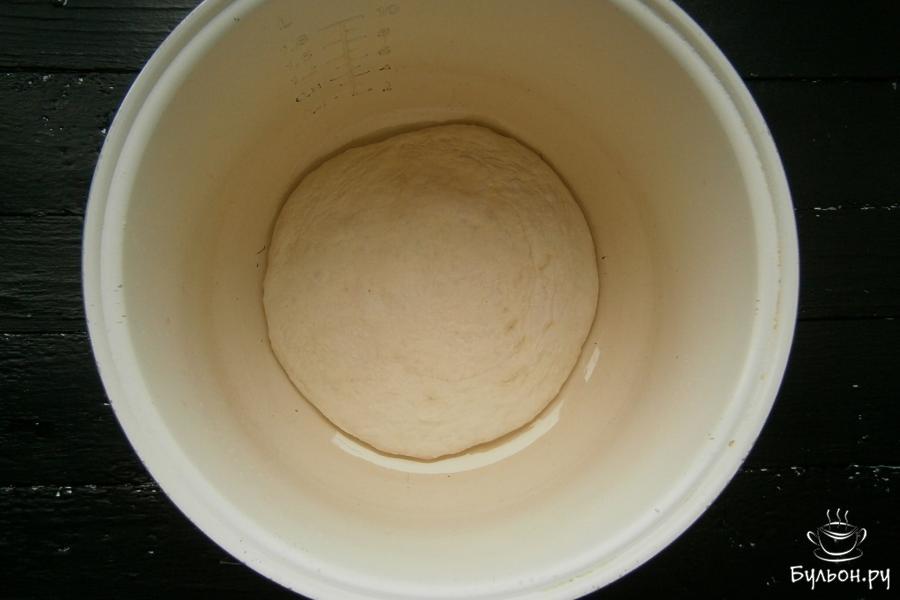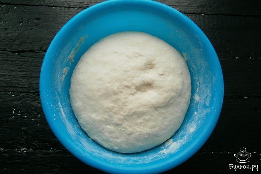 3. Замесить плотное, но не тугое, гладкое тесто, которое накрыть целлофаном или пищевой пленочкой и оставить на 40-45 мин. в теплом месте.