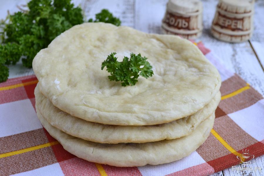 7. Готовый горячий лаваш прикрыть полотенцем и дать ему остыть. Затем, также, раскатать и испечь оставшиеся части теста.