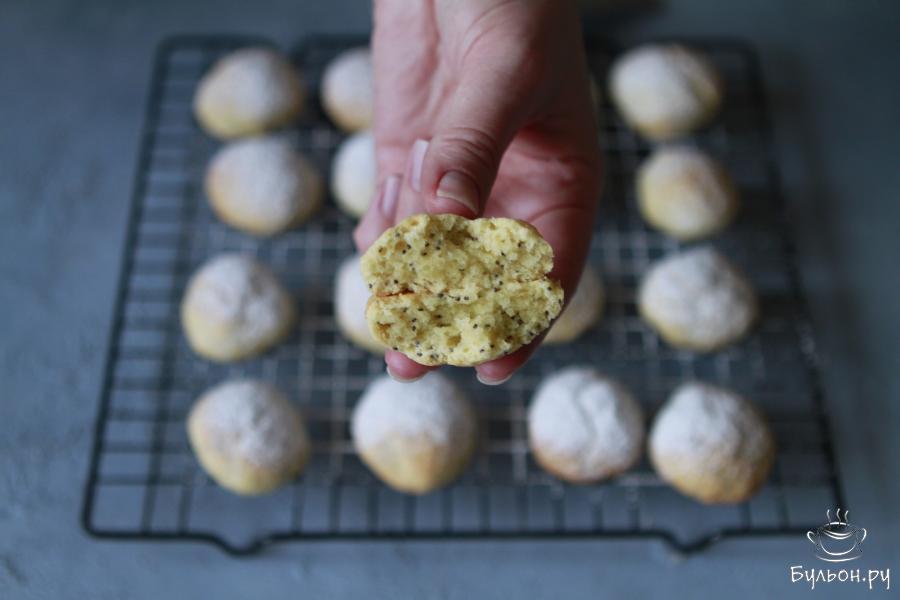 7. Печенье остудить на решетке, а затем присыпать сахарной пудрой. Вкусное мгкое рассыпчатое печенье с маком готово. Приятного Вам аппетита.