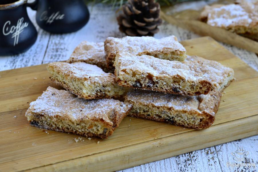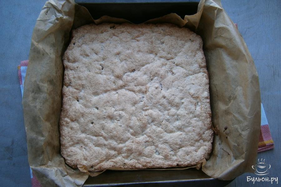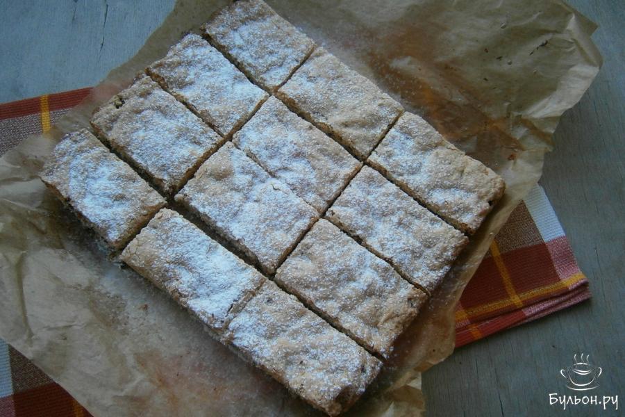 8. Порезать корж на прямоугольники или квадраты, ромбики, дать ему остыть и присыпать небольшим количеством сахарной пудры.