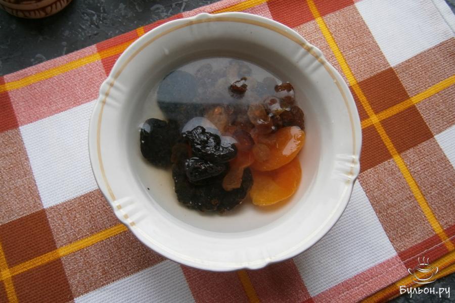 1. Чернослив, изюм и курагу залить горячей водой на 5 минут, обсушить. Предварительно отварить свеклу и остудить ее, а также, очистить.