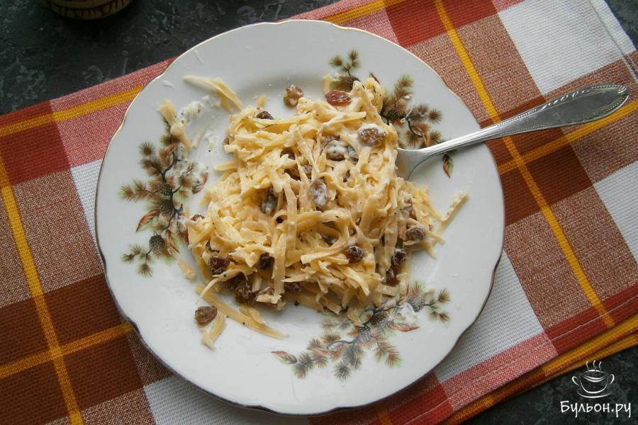 Кто и почему дал такое название салату - я не знаю, но то, что он очень вкусный, интересный, полезный и необычный - это точно. Салат готовится из овощей с сухофруктами и орехами, в нем нет ни колбасы, ни мяса, но вкус - потрясающий. Такой салатик можно приготовить на ужин для своего любимого или предложить гостям на любой праздник. Майонез лучше использовать собственного приготовления или вообще заменить его на сметану или йогурт. Отличный овощной салат, попробуйте.