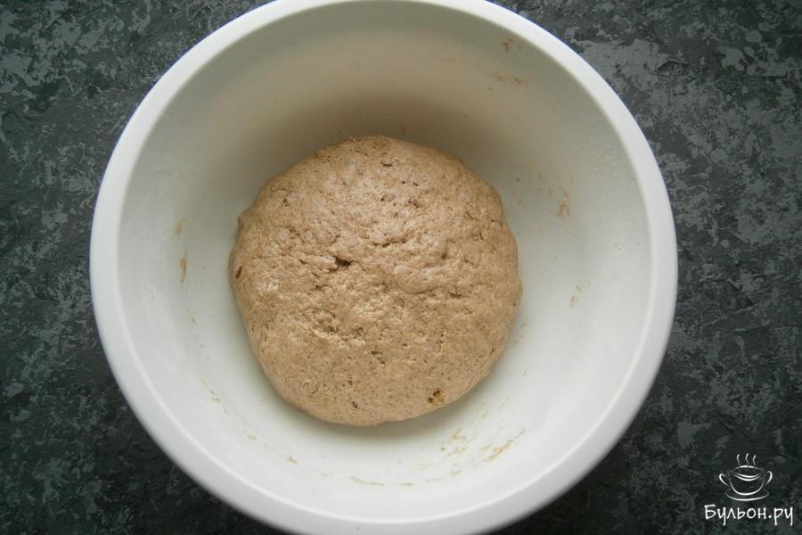 8. Далее, замешивать тесто уже руками. Оно должно быть нежным, мягким, но плотным и хорошо держащим форму. Подкатать его в шар и накрыв целлофаном оставить в тепле на час.