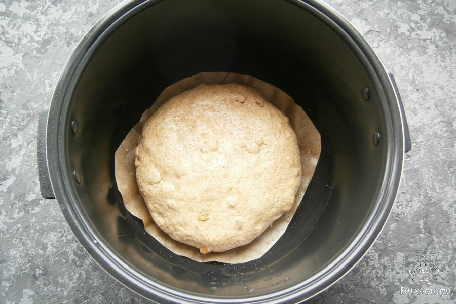 10. Чашу промазать растительным маслом, на дно поместить пергамент. Тесто обмять, разместить его в подготовленной чаше.