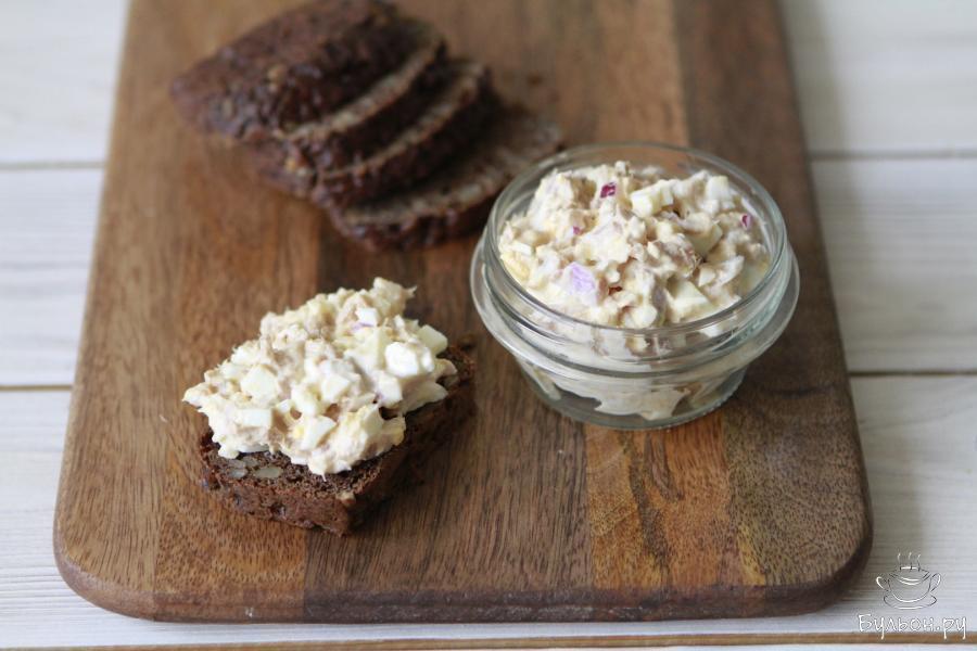 6. Закуска из консервированного тунца готова. Подать ее можно на кусочке черного хлеба, хлебцах или в небольших корзинках. Приятного Вам аппетита.