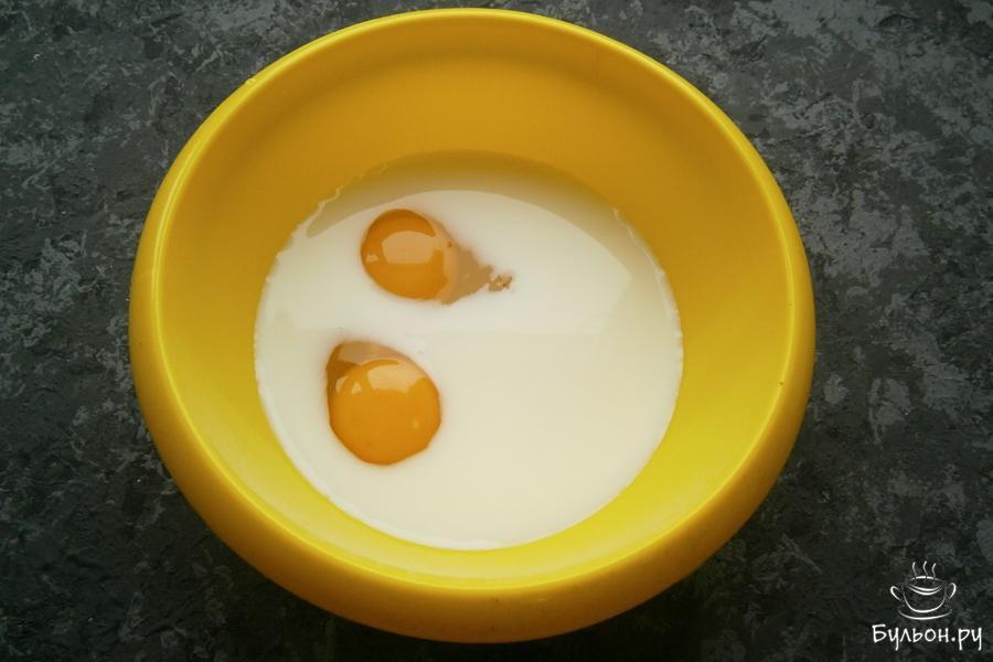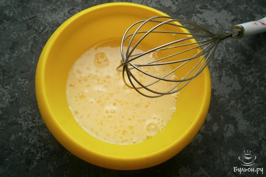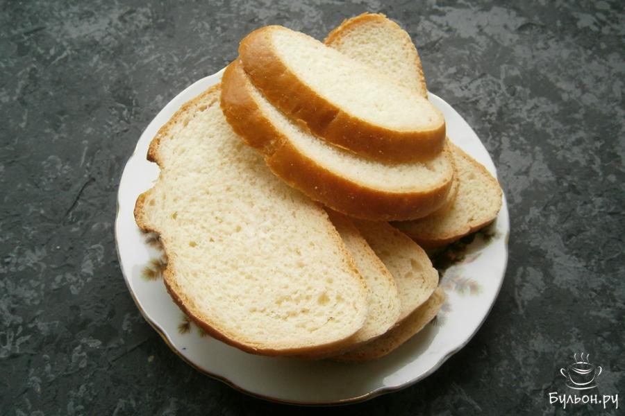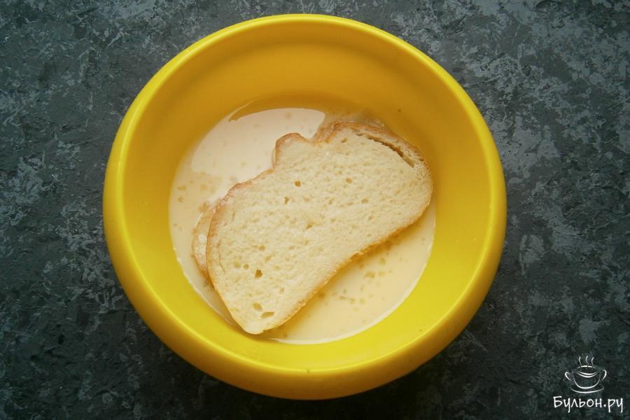 5. Каждый ломоть батона или хлеба опустить полностью в молочно-яичную смесь, подержать несколько секунд. Если хлеб черствый - выдержать его в смеси около минуты.