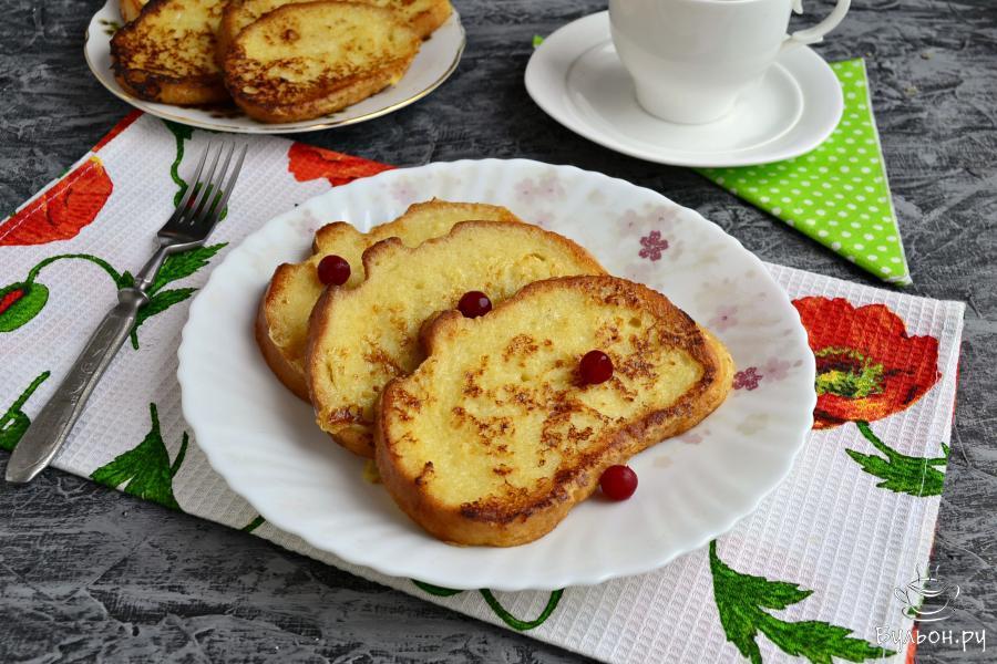 Эти замечательные гренки ассоциируются у меня с детством, их часто готовила моя мама. Уверена, что многие вспомнят свой детский завтрак со сладкими греночками на столе. Готовятся гренки совершенно просто и буквально за минуты, получаются безумно вкусными, нежными, с чуть хрустящими краями. Белый батон или хлеб можно брать и черствый, гренки все-равно будут мягкими. Главное, порезать батон нужно не очень тонко - около 1 см толщиной и жарить гренки обязательно на сливочном масле. Попробуйте, эти гренки точно понравятся вашим родным, их с удовольствием съедят на завтрак ваши детки, которых обычно трудно накормить.