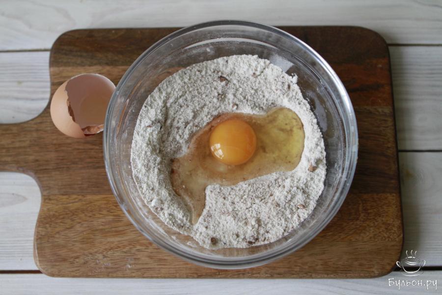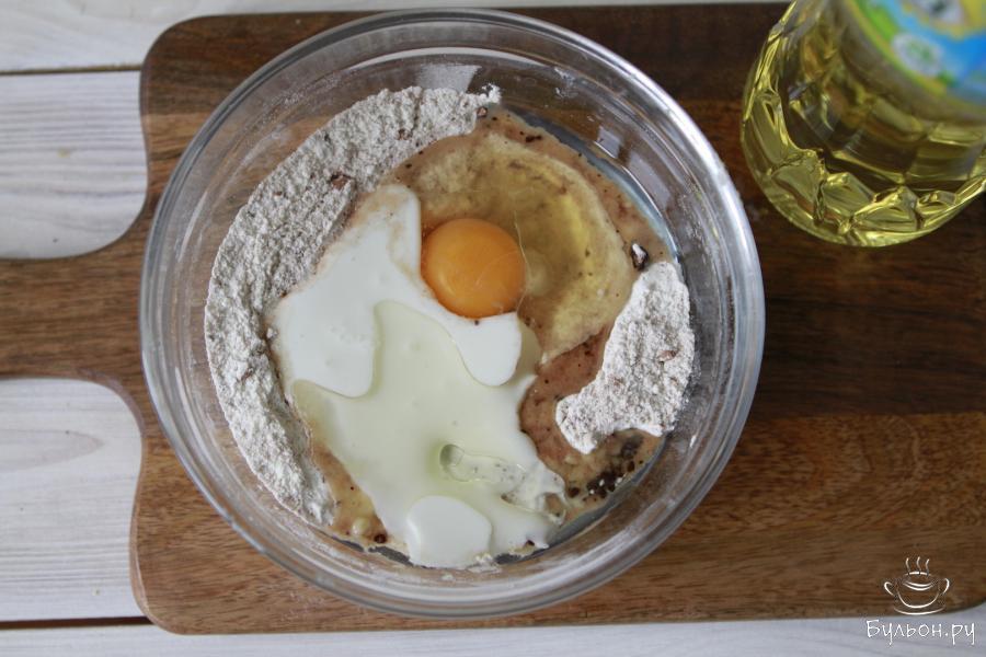 1. В чашу для замеса просеять муку, добавить сахар, разрыхлитель для теста, какао-порошок. Сухие ингредиенты хорошо перемешать между собой.