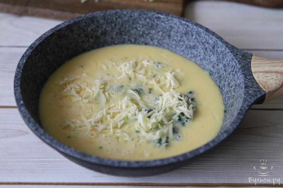 7. Сковороду закрыть крышкой и готовить омлет на медленном огне примерно минут 10. Подавать готовый омлет в теплом виде. Приятного Вам аппетита.