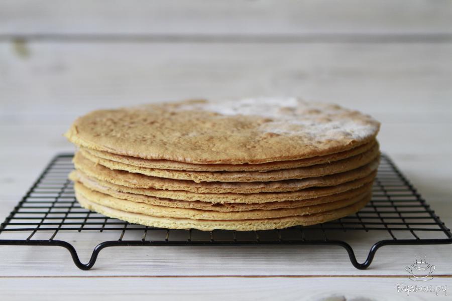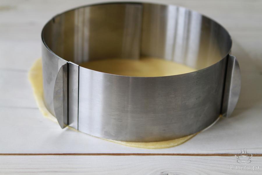 8. При помощи формы или кольца для выпечки вырезать круг нужного диаметра (у меня диаметр коржа 22 см).