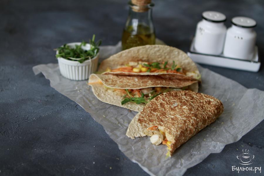 Тако - это традиционная мексиканская закуска. Если говорить проще, то это лепешка с начинкой, кстати, она может быть абсолютно разной, как мясной, так и овощной. Лепешки для тако можно приготовить самостоятельно, замешивают тесто на них чаще всего на кукурузной муке. Мой вариант рецепта лайт, я купила лаваш, как раз подходящий для такого блюда. Мексиканцы добавляют очень много специй, мы не совсем привыкли к такой кухне, поэтому специи рекомендую добавлять те, что нравятся вам. Мы в семье любим блюда поострее, поэтому я добавила соус табаско.