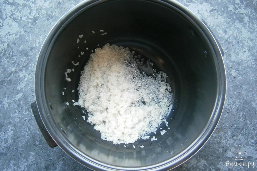 1. Рис хорошо промыть, лучше - несколько раз, высыпать его в кастрюлю. Я готовила рис в мультиварке и поместила его в чашу.