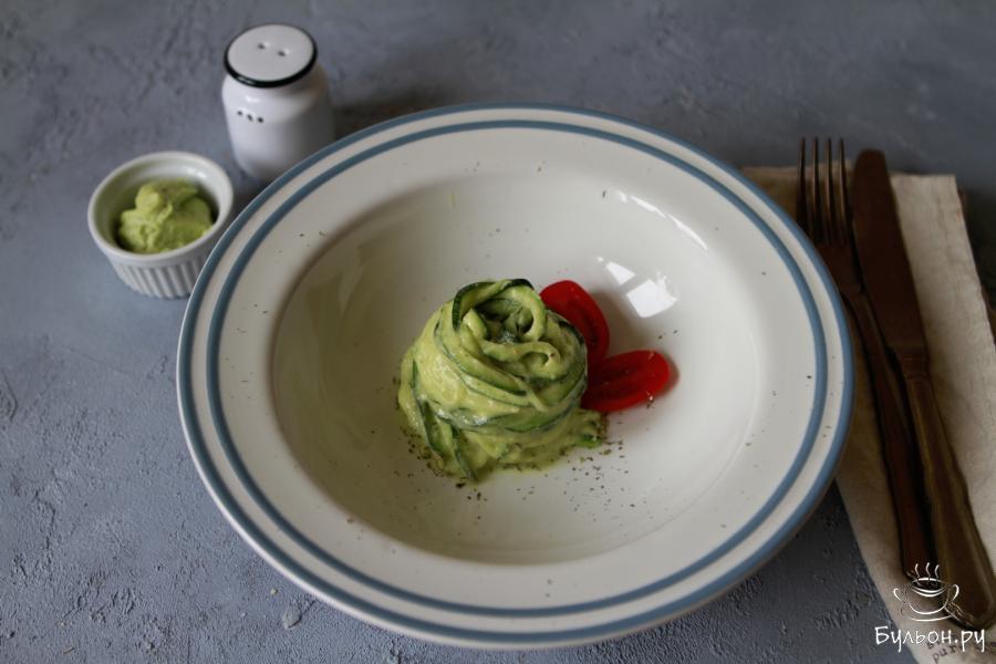 Любителям спагетти хочу предложить очень интересный рецепт спагетти из цуккини с соусом из авокадо. По внешнему виду он мало чем отличается от тарелки настоящих спагетти. Готовят это блюдо из молодых овощей цуккини, кабачка, можно даже и из огурцов. Без помощи овощерезки обойтись будет правда трудно, благодаря такой помощнице лапша из цуккини получается тонкой и длинной. Соус к этому блюду готовят разный, однако самый распространенный это соус из авокадо. Все специи и табаско добавляются по вкусу. Не любите острые блюда, табаско и вовсе можно исключить. Рекомендую попробовать это блюдо, рецепт его будет актуален и в постные дни.