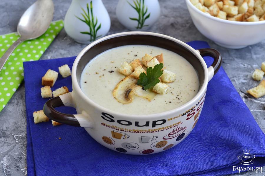 Крем-суп - это разновидность первого блюда, которое имеет густую, бархатистую и однородную консистенцию. Для загустения в крем-суп обычно вводится мука, а в конце приготовления - жирные сливки или, изначально этот суп готовят на основе соуса бешамель. Этим крем-суп, например, отличается от супа-пюре. Данный крем-суп из шампиньонов - безумно вкусное, ароматное, нежное, очень изысканное французское блюдо, которое обязательно понравится всем без исключения. Готовить крем-суп нужно только на один раз, после разогревания он потеряет свои замечательные качества и подавать его лучше всего с сухариками. Попробуйте, крем-суп из шампиньонов - шикарное блюдо.