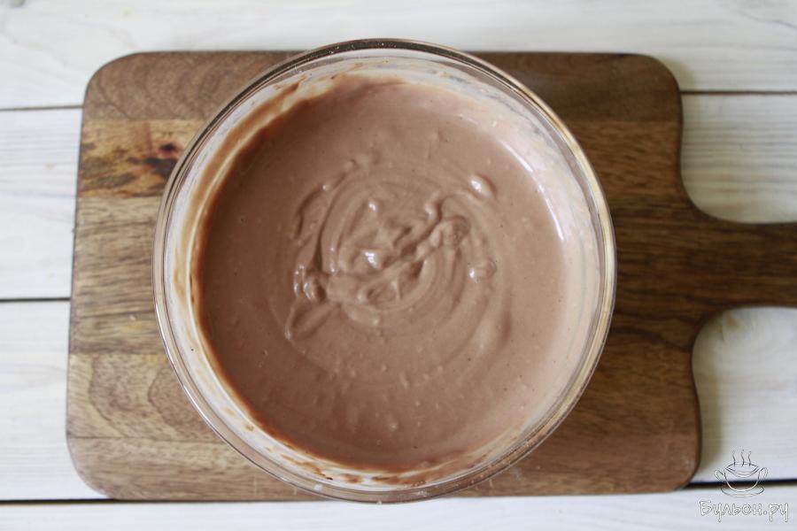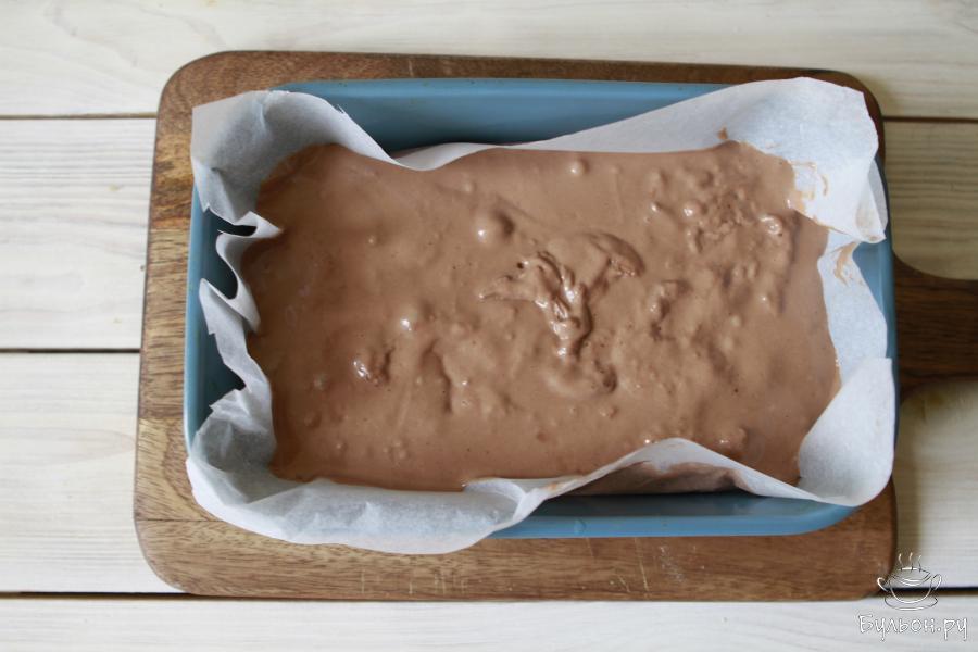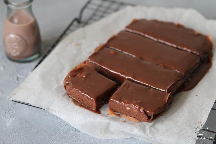 8. Выпекать в разогретой духовке при 180 градусах 20-25 минут. Готовность проверить зубочисткой. Брауни достать, остудить и нарезать на кусочки. По желанию украсить растопленным шоколадом.