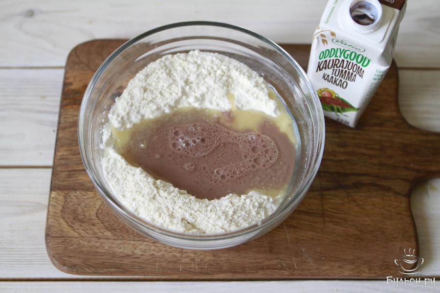 Брауни - любимое лакомство многих. Сегодня хочу предложить вам приготовить этот десерт из овсяного молока, без добавления яиц и коровьего молока. Вполне актуален рецепт в Пост, если подобрать постный шоколад. Основной ингредиент - это овсяный напиток с какао. Благодаря своему насыщенному цвету и вкусу, можно вполне обойтись без какао-порошка. В качестве шоколада я использовала шоколадные капли, но их вполне можно заменить на дольки плиточного шоколада. Если предпочитаете очень сладкие десерты, то сахара можно добавить больше, нежели указано в рецепте.