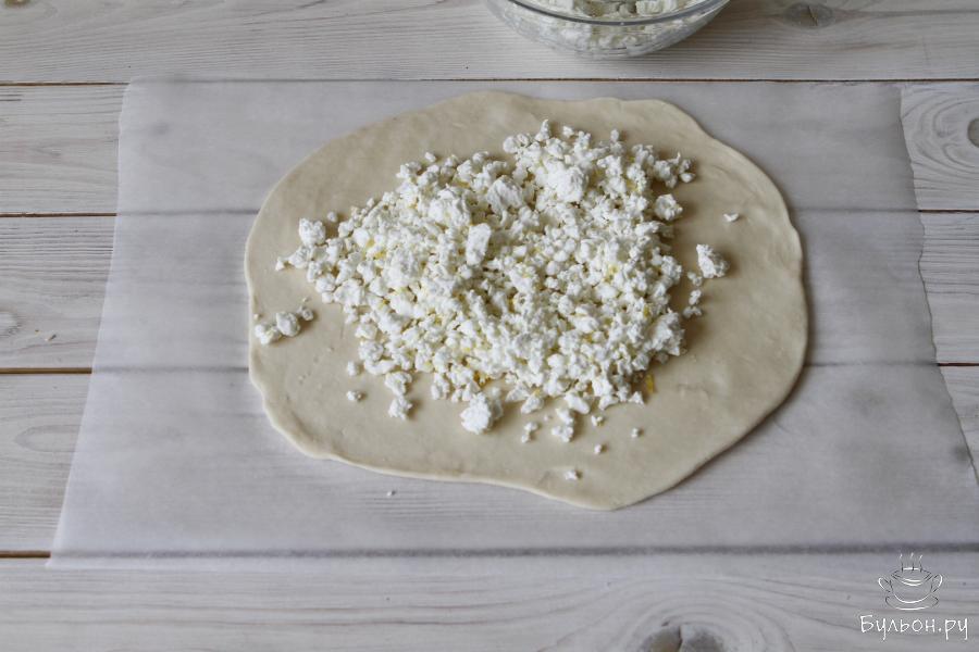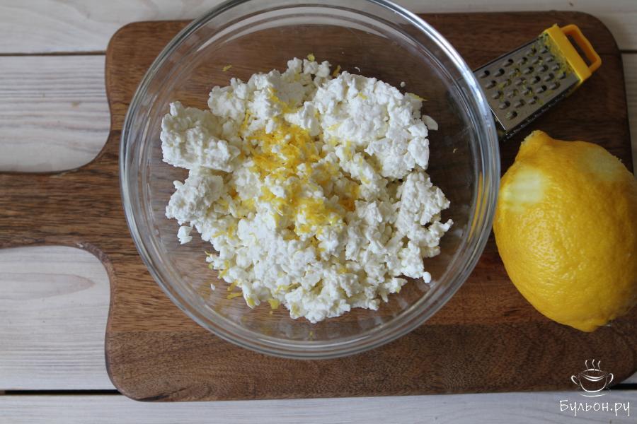 4. Для начинки приготовить сухой рассыпчатый творог. Добавить сахар, цедру лимона и хорошо все перемешать.