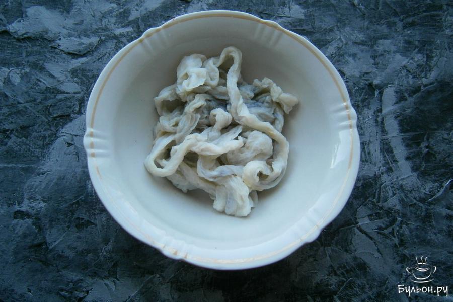 3. Свиные кишки хорошо промыть под струей воды. Для этого кишку следует натянуть на гусак водяного крана и пустить воду.