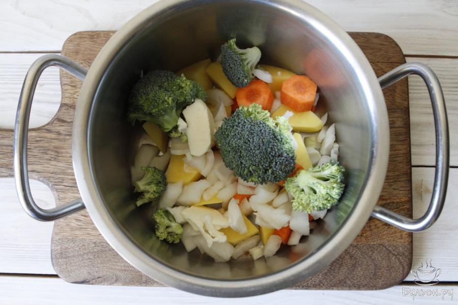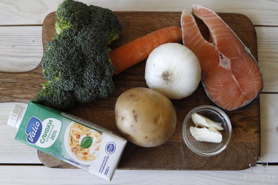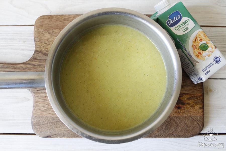 5. Варить суп до готовности овощей и рыбы. На это уйдет, примерно, 20-25 минут. По готовности достать рыбу и пюрировать овощи. Для густоты супа бульон можно слегка отлить. Добавить сливки и довести до кипения.