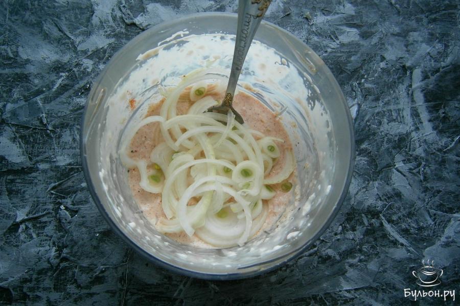 Весна... Первые теплые деньки.... И все мы стремимся выехать на природу с обязательной жаркой шашлыков. Хочу предложить вам очень удачный рецепт маринада с майонезом, который подойдет как для свинины, так и для курицы (мы попробовали оба варианта - очень вкусно). Мясо замаринованное в данном маринаде получается сочным, мягким и нежным, очень румяным и безумно вкусным. Если будете готовить свинину, ее нужно выдержать в маринаде часов 5, если же маринуется курица - хватит и 1-2 часов. Попробуйте обязательно, это один из самых любимых в нашей семье маринадов для шашлыка. Майонез можно использовать любой жирности.