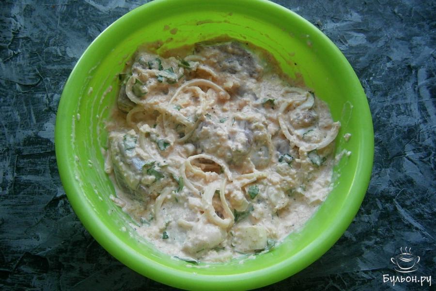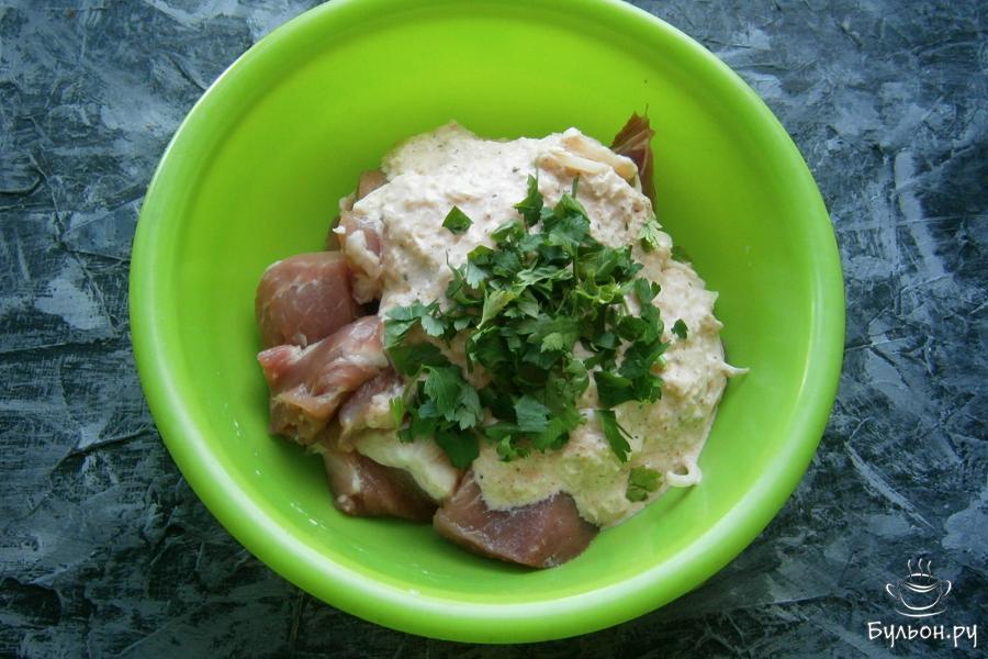 6. Мясо с маринадом хорошо перемешать и помять руками в течение нескольких минут. Оставить мясо в прохладном месте для маринования от 1 до 5 часов, в зависимости от того, курица это или свинина.