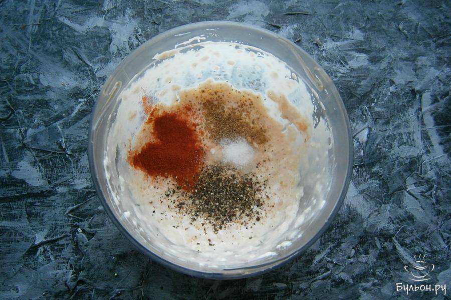 3. Все измельчить на средней скорости блендера, убрать нож и добавить соль, кориандр, паприку и черный перец.
