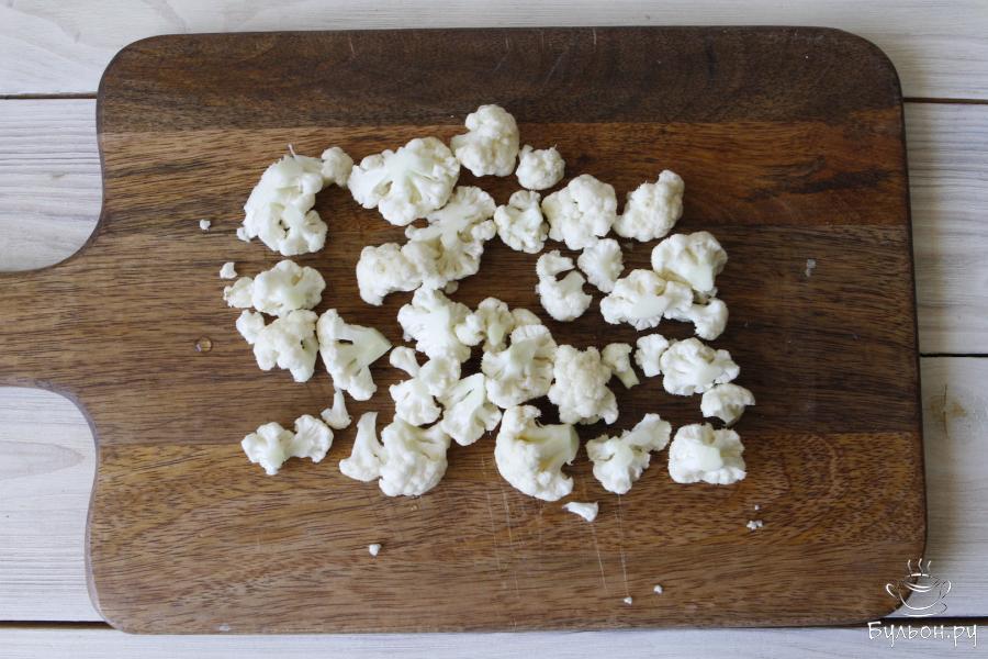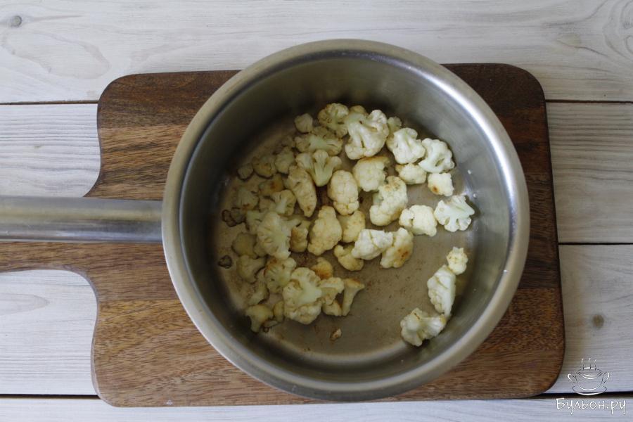 3. Соцветия цветной капусты промыть под проточной водой и обсушить. Обжарить на сливочном масле до приятного золотого цвета.
