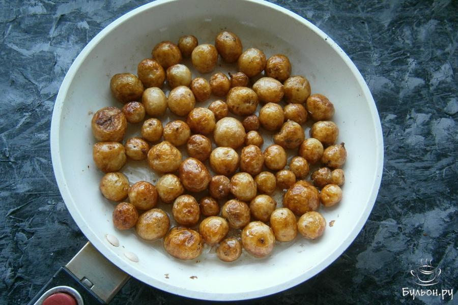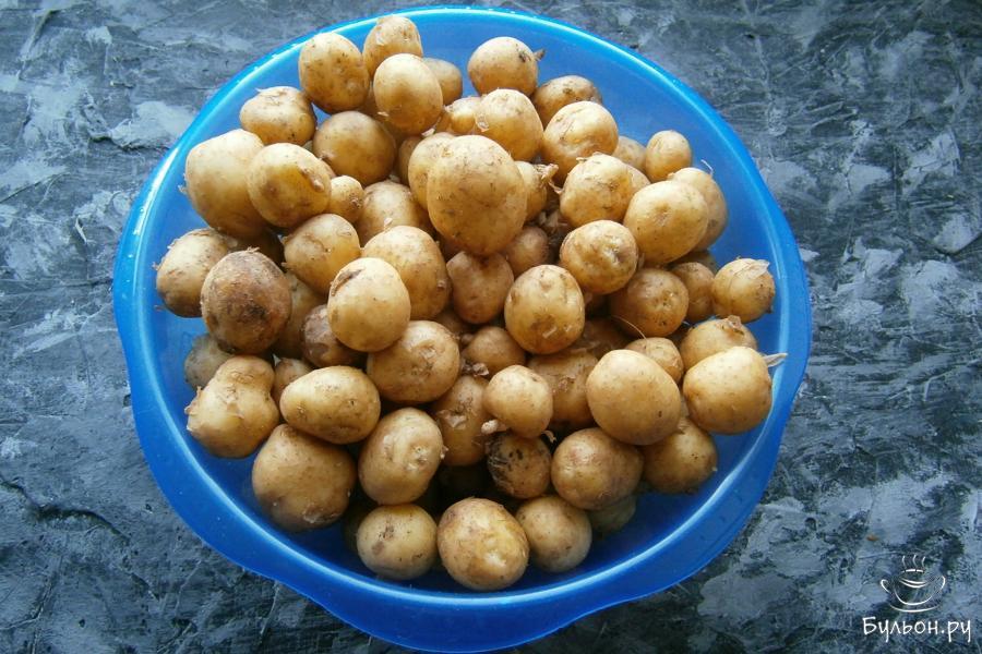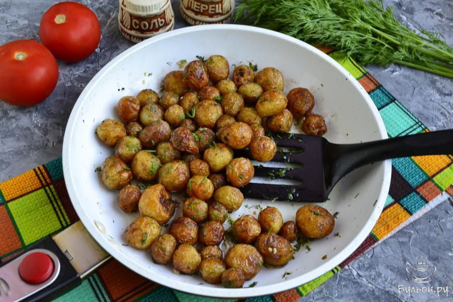 С приходом теплой погоды на прилавках наших магазинов и рынков стремительно появляются свежие овощи и фрукты, в том числе и молодой картофель. Хочу предложить вам безумно вкусное блюдо - молодой картофель жареный на сковороде. Для этого блюда идеально подойдет самый мелкий картофель, который не нужно очищать и готовится он в кожуре. Готовый жареный картофель получается с хрустящей золотистой корочкой и нежной мякотью. В горячем виде картофель посыпается измельченным чесноком и зеленью укропа, отчего аромат блюда умопомрачительный. Подавать такой картофель нужно сразу же, с пылу-жару, обязательно попробуйте - это так вкусно.