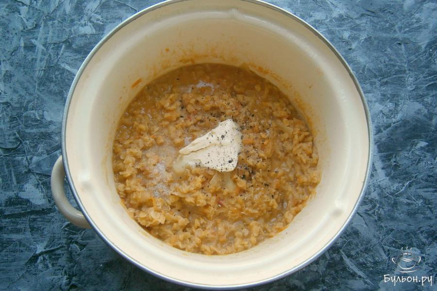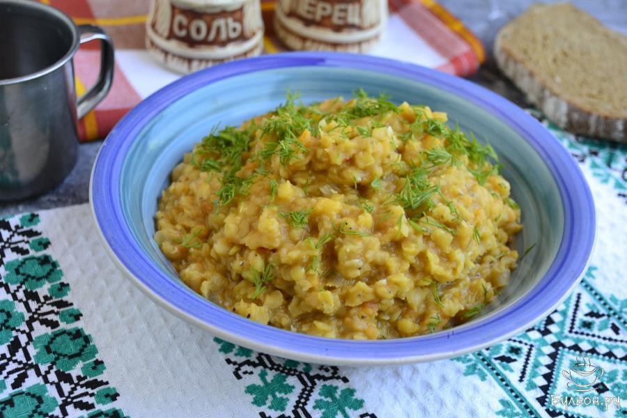 Чечевица очень полезна для нашего организма и ее нужно включать в свой рацион, тем более в наше время найти ее в магазинах не составит труда. Чечевица в своем составе содержит такое же количество протеинов, как и мясо, только без холестерина. Существует несколько видов чечевицы, но самая вкусная - красная. Она готовится быстро, имеет свойство развариваться, каша из красной чечевицы получается нежной и масляной. Вкуснейшую кашу из этих бобовых я и предлагаю вам попробовать. Ее можно подать с легким овощным салатом или тушеными овощами.