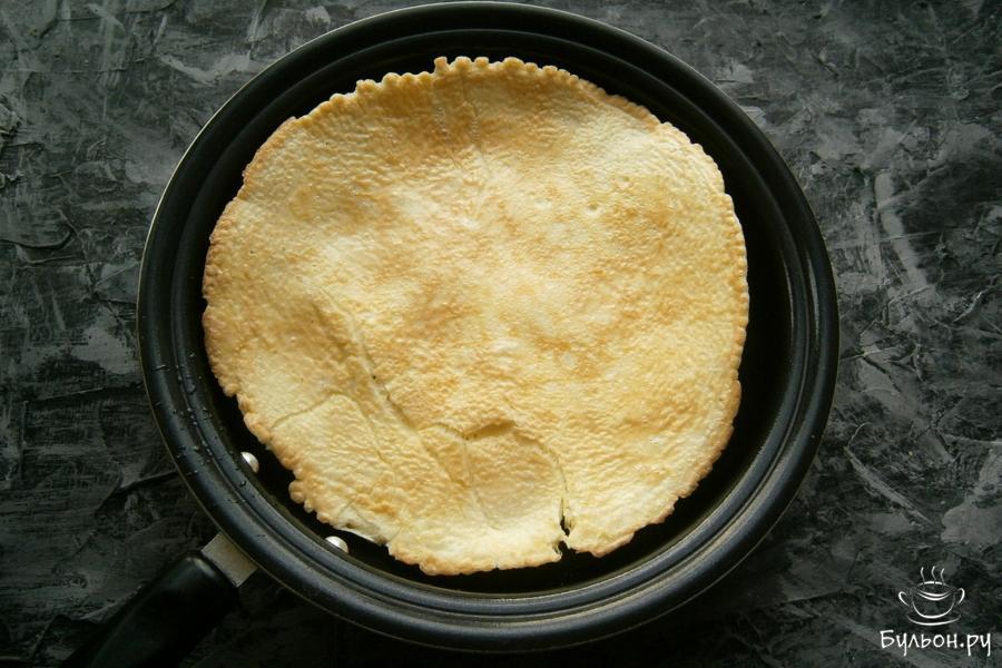 4. На разогретой с любым растительным маслом сковороде пожарить один или два блинчика (зависит от размера сковородки) обычным способом.