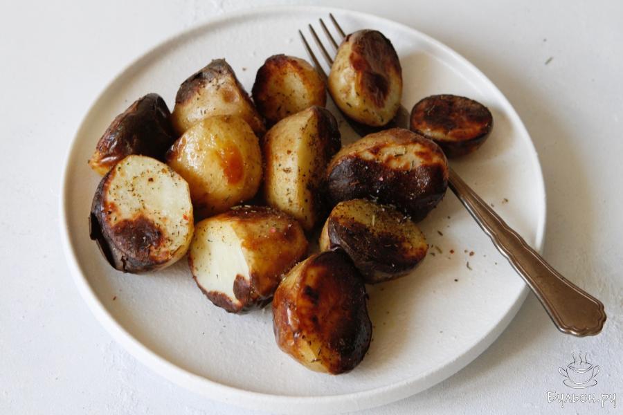 6. Через 25-35 минут картофель с чесноком и травами, какие детстве, будет готов к подаче. Приятного вам аппетита.