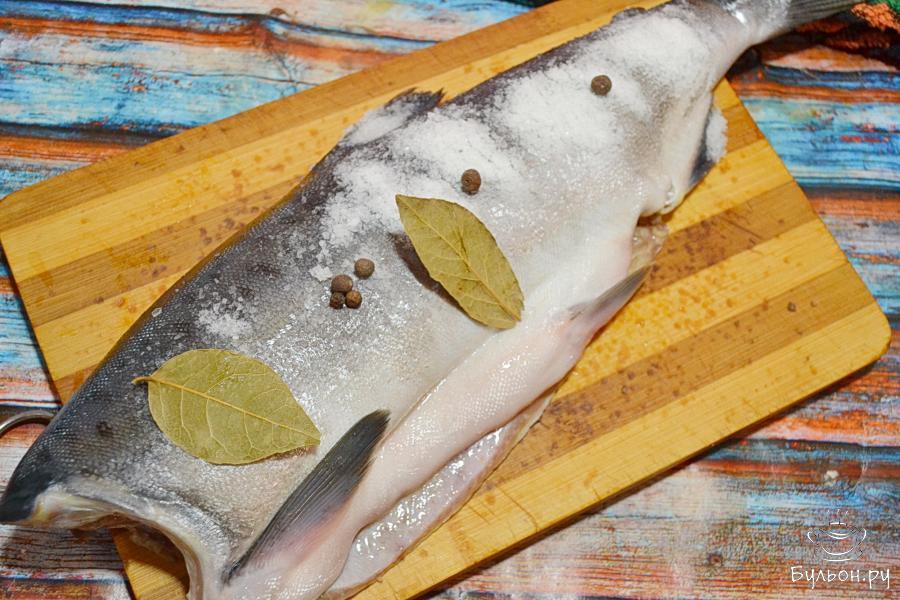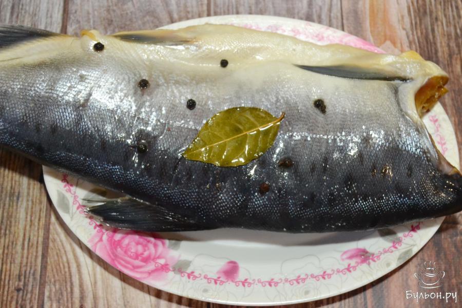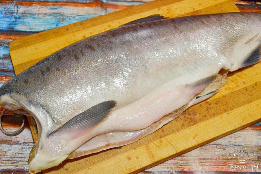 2. Тушку рыбы я купила без головы. Промоем ее снаружи и изнутри. Внутренности выбирать не нужно, так как куплена рыба уже потрошенная.