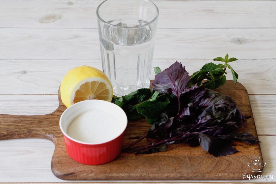 1. Подготовить все ингредиенты по списку. Для напитка лучше всего брать темный базилик, именно он и придаст напитку цвет.