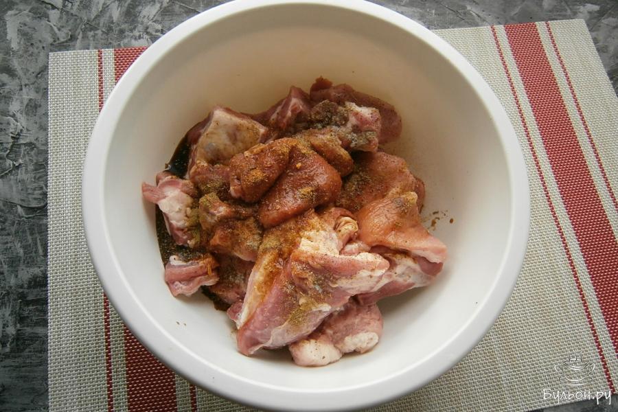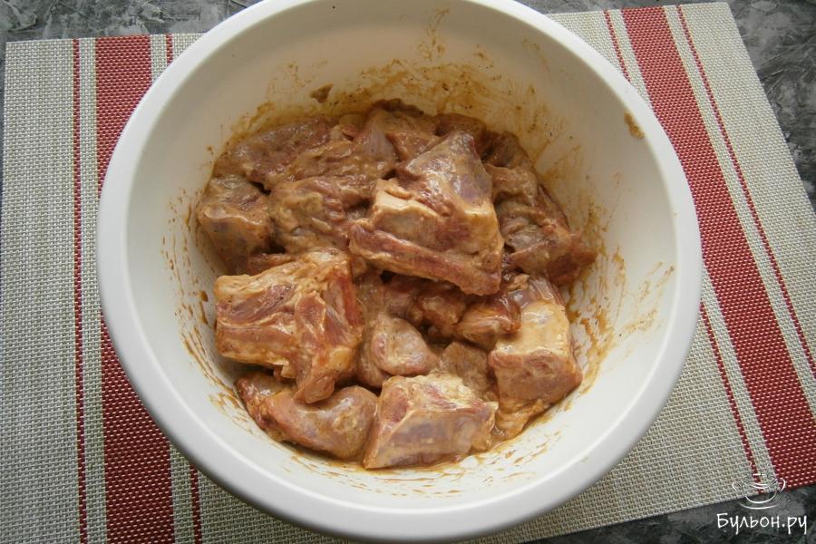 5. Ребрышки тщательно перемешать и помять руками, оставить для маринования при комнатной температуре на пару часов.