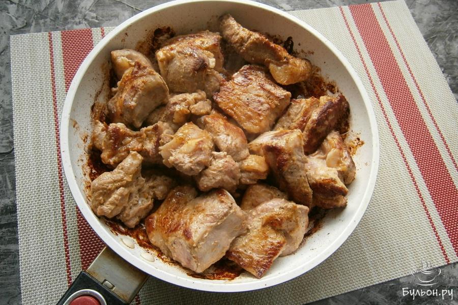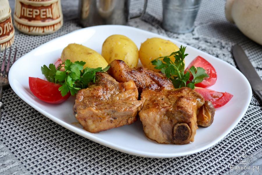 6. Разогреть сковороду с оставшимся маслом, выложить на нее ребра. Обжаривать их на довольно сильном огне 3-4 мин., после чего перевернуть и жарить еще такое же время.